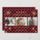 Custom Red Buffalo Plaid 3 Photo Holiday Card