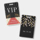 Create an atmosphere of Hollywood glam at your bat mitzvah celebration with these personalized VIP passes. Customizable badge features a red carpet and velvet rope background with "VIP" and two lines of custom text. Add additional text to the reverse side, topped with blush and gold confetti dots. Badges can also be personalized with each individual guest's name if desired.