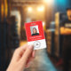 Custom red Employee Badge with Photo, Logo, QR