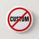 Custom red forbidden sign round pinback buttons. Make your own prohibited icon badge with anti text or image in the background. Round circle transparent overlay with diagonal cross vector design. Create a personalized stop warning or oppostion against something. No smoking, no photos, no dogs etc.