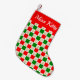 Custom Red Green Paw Print Chequered Pattern Pet Small Christmas Stocking