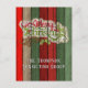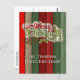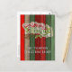 Beautiful, unique, classic, trendy, pretty and decorative Christmas holiday greeting card with a classic Holiday dark red, forest green, and white coloured 'Merry Christmas' quote text on a rustic weathered wooden country cottage farmhouse style planks pattern background. With room to easily customize or personalize with your company or family name, and room on the backside to write or print your own Holiday wish.