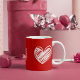 Celebrate love and friendship with this Custom Red Heart Mug, featuring a hand-drawn white heart on a bold red background and a personalized name in elegant script. The minimalist design makes it perfect for bridesmaid gifts, romantic gestures, or everyday warmth.