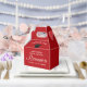 This modern custom high school reunion party favour box features the high school alumni name in white typography on a red background for a 10th, 20th, or 30th alumni.