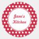 A bright red and white polka dot pattern decorates these fun stickers. Customize these stickers to suit your needs. Use this stylish sticker for a bakery, business, kitchen, food containers, crafts, products, packaging, a birthday party, bridal shower, etc....The design is from original art.