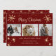 Magical red photo collage Christmas cards featuring snowflakes and stars on the front and sparkly snowflakes at the back. Easily personalize these 3 photo Christmas cards with your images, text and family name.