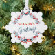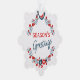 Custom Red Teal Blue Bird & Floral Folk Art Wreath Ornament Card