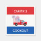 Custom paper napkins featuring a red, white, and blue design. You can customize both lines of text on the napkin by using the personalized template.