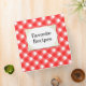 A retro recipe binder with a red and white kitchen plaid background pattern. The front has a white frame with golden scrolls with room to add your family name in retro letters.