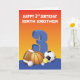 A collection of colorful sports balls are on the front of this card. This would be nice to give a baby boy on the celebration of his 3rd birthday. Personalize this one with the relationship you have with him. Order this card today.