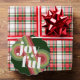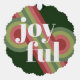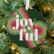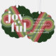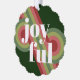 Contemporary classic Christmas holiday season ornament card with light and dark green, pink and red coloured abstract pattern and JOYFUL wish text in crisp white. With room to customize or personalize with a family name (or individual names) and a personal season greeting message.