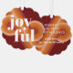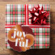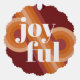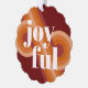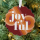 Contemporary classic Christmas holiday season ornament card with a classic dark red, coral, and pastel peach orange coloured abstract pattern and JOYFUL wish text in crisp white. With room to customize or personalize with a family name (or individual names) and a personal season greeting message.