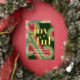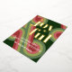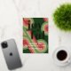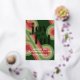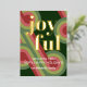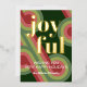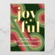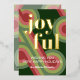 Contemporary classic Christmas holiday season greeting card with light and dark green, pink and red coloured abstract pattern with real gold foil JOYFUL wish text. With room to customize or personalize the text on the front, and family name (or individual names) and a customizable season greeting message on the backside of the card.