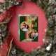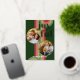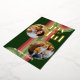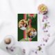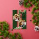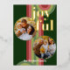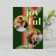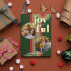 Contemporary classic Christmas holiday season greeting card with light and dark green, pink and red coloured abstract pattern with real gold foil JOYFUL wish text. With room to customize or personalize with two photos and family name (or individual names) on the front, and a customizable season greeting message on the backside of the card.