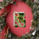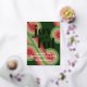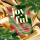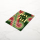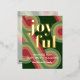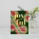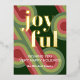 Contemporary classic Christmas holiday season greeting card with light and dark green, pink and red coloured abstract pattern with real gold foil JOYFUL wish text. With room to customize or personalize the text on the front, and family name (or individual names) and a customizable season greeting message on the backside of the card.