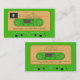 Also see 1 sided tape version. Green blank on the back, Cassette tape on front.