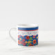 A pretty little Espresso Coffee Mug to personalize, with a nostalgic feel and a retro Floral mini-print pattern on a Deep Blue background, trimmed with White Lace-effect. Part of the Posh & Painterly 'Granny Print' collection, this mix'n'match hand-painted paper collage pattern can be easily adjusted to fit any Mug.