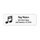 Custom Return Address Labels with music note logo. Stylish script typography letters with musical icon. Great for musician, music dj, band, orchestra, composer, music school, lessons, piano teacher, guitar player, artist, singer, producer, performer, etc. Symbol printed with your contact details. Personalizable labels for home, family, business, office, company, bridal shower, wedding party, event, festival etc.