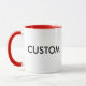 Custom Ringer 11oz Ceramic Mug - RED Lip & Handle, 3.8” high x 3.2” diameter. 11 oz or 15 oz options. Microwave and dishwasher safe. FDA food and beverage safety approved. Black, maroon, hunter green, light blue, lime, navy blue, orange, pink, yellow, and red colour options.