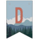 Designed to match our On The Edge kids rock climbing birthday party invitations, this fun and adventurous bunting flag design features fourteen custom text fields to spell out your message (shown with "Happy Birthday") on a mountain range and pine forest background. The first and last flags have an additional illustration of a mountain climber hanging from a rock.