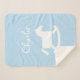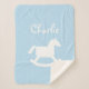 Personalized sherpa fleece baby blanket with rocking horse logo available in small medium or large size. Cute toy design for new baby girl or boy. Lettering print with soft pastel blue solid background colour. Comfy home decor accessories for sofa, couch or bed. Elegant decoration gift for newborn child and new mom. Baby shower presents for him or her. Add your own personalized kids name, funny quote, inspirational quotation, slogan or fun saying. Available big and smaller sizes. Super soft and cuddly! Fun design for small infants. Present ideas for son, grandson, grandchild, daughter, granddaughter, nephew etc.