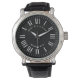 A bold wristwatch that blends functionality with personalization. This striking timepiece features Roman numerals for hour markers and dashes for seconds, along with two customizable text fields currently displaying "Best Dad Ever" and "Since 19XX," which can be tailored to your liking. You can personalize these fields with a name, special message, birth date, anniversary, retirement date, or any meaningful detail. Its minimalist design makes it perfect for both personal and professional settings, offering versatility for any occasion. This wristwatch is an excellent gift for loved ones or a timeless addition to your collection.
