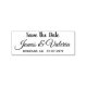 Easily personalize these custom Romantic Save The Date self-inking rubber stamps with your own names and address. To customize these rubber stamps, click on "Personalize this template" and change the text in the boxes provided. Available in 9 different colours and 6 sizes. Please view your design on the monitor as close to actual size as possible to ensure that the text prints at the expected size. For use as a return address stamp most people will require a larger size than this. These return address self-inking rubber stamps stamp up to 10000 impressions with each cartridge, have a soft touch for secure grip and ink-free fingers and an eco-friendly manufacturing process. No minimum order quantity.