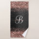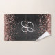 Custom Rose Gold Glitter Black Sparkle Monogram Bath Towel Set