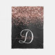 Custom Rose Gold Glitter Black Sparkle Monogram Fleece Blanket