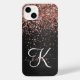 Custom Rose Gold Glitter Black Sparkle Monogram iPhone Case