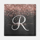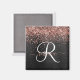 Custom Rose Gold Glitter Black Sparkle Monogram Magnet