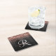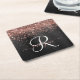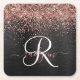 Custom Rose Gold Glitter Black Sparkle Monogram Square Paper Coaster