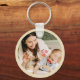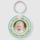 Custom Round Birthday Photo Beige & Turquoise Keychain