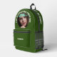 Custom Round Photo and Text Solid Forest Green Printed Backpack