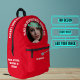 This fully customizable backpack (in the solid colour red) allows you to upload your favourite photo, meaningful text, or even swap in a variety of background designs. Imagine your childhood vacation pic splashed across the front, a motivational quote keeping you company, or a funky patterned background – the possibilities are endless. Made with durable materials, this backpack is perfect for everyday adventures, school, or travel. So ditch the generic bags and design a masterpiece that reflects your unique style!