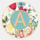CUSTOM ROUND STICKERS FLOWERS AND INITIAL