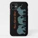 A cool Case-mate case to personalize for your iPhone 5/5s smartphone, with a row of Elephant silhouettes, filled with a Dark Blue and Burgundy Paisley pattern, on a Black background that you can change if you wish. The lettering shown is in Burnt Orange and you can also change the font and its color. Part of the Posh & Painterly 'Heffalumps' collection, this design can be adjusted to fit any Case.