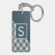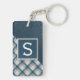 Custom Rustic Dark Blue Brown Stripe Plaid Pattern Keychain