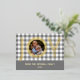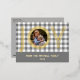 Contemporary classic Christmas holiday season greeting card with classic chic white and grey coloured traditional Buffalo Lumberjack plaid tartan pattern. With option and room to customize a personal family photo, name and year date of your choice on the front, and a customizable season greeting message on the backside of the card.
