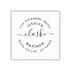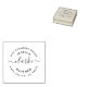 This wooden stamp is an excellent choice for any married couple looking for a mailing accessory for all their outgoing letters. This design keeps the classic round shape of the return address with your last name in the centre in a rustic, hand-lettered script, and 2 rings of text around it. The first ring, on the inside, features your first names and the second ring around the outside features your return address. To customize this design, simply click the "personalize" button and add your own details into the text boxes that appear.