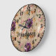 Custom Rustic Wood Flowers Purple Pink Roses Large Clock