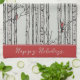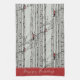 This modern kitchen towel features hand-drawn birch trees with red Cardinal birds perched on branches in black ink, with shading done in cross-hatch style, against an elegant very light sage green background. Personalize with you favourite Holiday greeting, a name, or a Family name.
