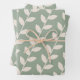 Custom Sage Green 70s Retro Leaf Pattern Wrapping Paper Sheet