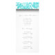 Custom salon menu rack cards in elegant and feminine bright turquoise teal sky blue, dark charcoal grey and white classic floral damask pattern. Personalize these price list cards with all your salon or spa services to provide your customers with a quick and easy way to know all their options. Contact us for a custom colour or for matching small business products.
