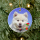 Custom Samoyed Dog Photo with Cute Elf Ceramic Ornament