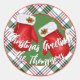 Custom Santas Mittens On Red Green Plaid Pattern Classic Round Sticker