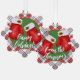 Unique, classic, cute, and decorative Christmas holiday ornament card with Santa's red mittens on a classic red, green, white and blue tartan pattern background and classic Happy Holidays quote text. With room to customize or personalize with family name, greeting, or wish of your choice.