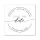 Modern, custom save the date stamp with elegant contemporary hand written calligraphy detail. Circular design with your name(s) in an arch on top area, ability to add event as well, and on the bottom area section for your date. Clean, simple, elegant style. Coordinating save the date card also available.