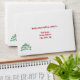 This scarlet red and white Christmas envelope perfectly complements the international "Merry Christmas" festive Christmas tree cards. It includes customizable fields for adding the sender's and recipients' names and addresses in stylish typography.