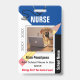 Personalize the Custom School Nurse Staff Identification Badge by replacing the template field information with a school nurse's text information, staff photo or school logo, and barcode. If you wish to leave an area blank, erase the text or photo in the template field. The front top contains a pencil in the background with a stethoscope over a blue and white background. It also has the title of the school, the photo of the school nurse staff member, the name, and special note. The front sides of the card have the school year date, and title of the school staff member. The back of the card contains additional customizable information with replaceable barcode. Design by Ms_Jade.